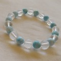 ビーズ仕様:ラリマー玉7.5mm x 11、ヒマラヤ水晶玉約8~8.5mm x11