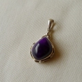 こちらはこの形がいいですよねぇ。 オーバルでもなくスクエアでもなく…ひし形?なすび形? こういう少しアレンジされた、唯一無二なシェイプって可愛いですよね。 美しい形です。 そしてこの色。 個人的にはこの色も好きです。 様々な色のあるスギライトでも好きなタイプの色ですね。 ディープなパープルにやや群青色を帯びている感じでしょうか。 だかと言ってブルースギというわけではありません。 決して色が沈んで見えるわけではないのは照り艶感が良いからでしょうか。 濃い紫色とシルバーの硬質な輝きの対比も良い感じですね。 胸元でお洒落を演出してくれそうです。